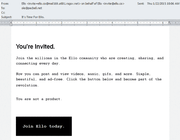 I signed up for the beta a few weeks ago, when there was some buzz around ello, but now I can't honestly think of any reason to join. Are any of you members? What's it like?