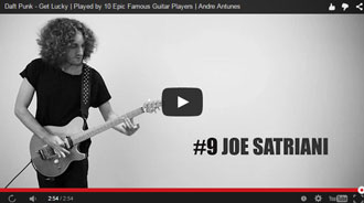 Old meets new: A guitar cover of Daft Punk's 'Get Lucky' in the styles of 10 famous guitarists. By the well-named Andre Antunes. Carlos Santana, Steve Vai, Kurt Cobain, Angus Young (AC/DC), Slash (Guns 'n Roses), Brian May (Queen), Mark Knopfler (Dire Straights), Tom Morello (Rage Against the Machine), Joe Satriani, and Eddie Van Halen. It's awesome. The guitarists I know well (Santana, Knopfler, Satriani, and Van Halen) were covered perfectly. I love it.